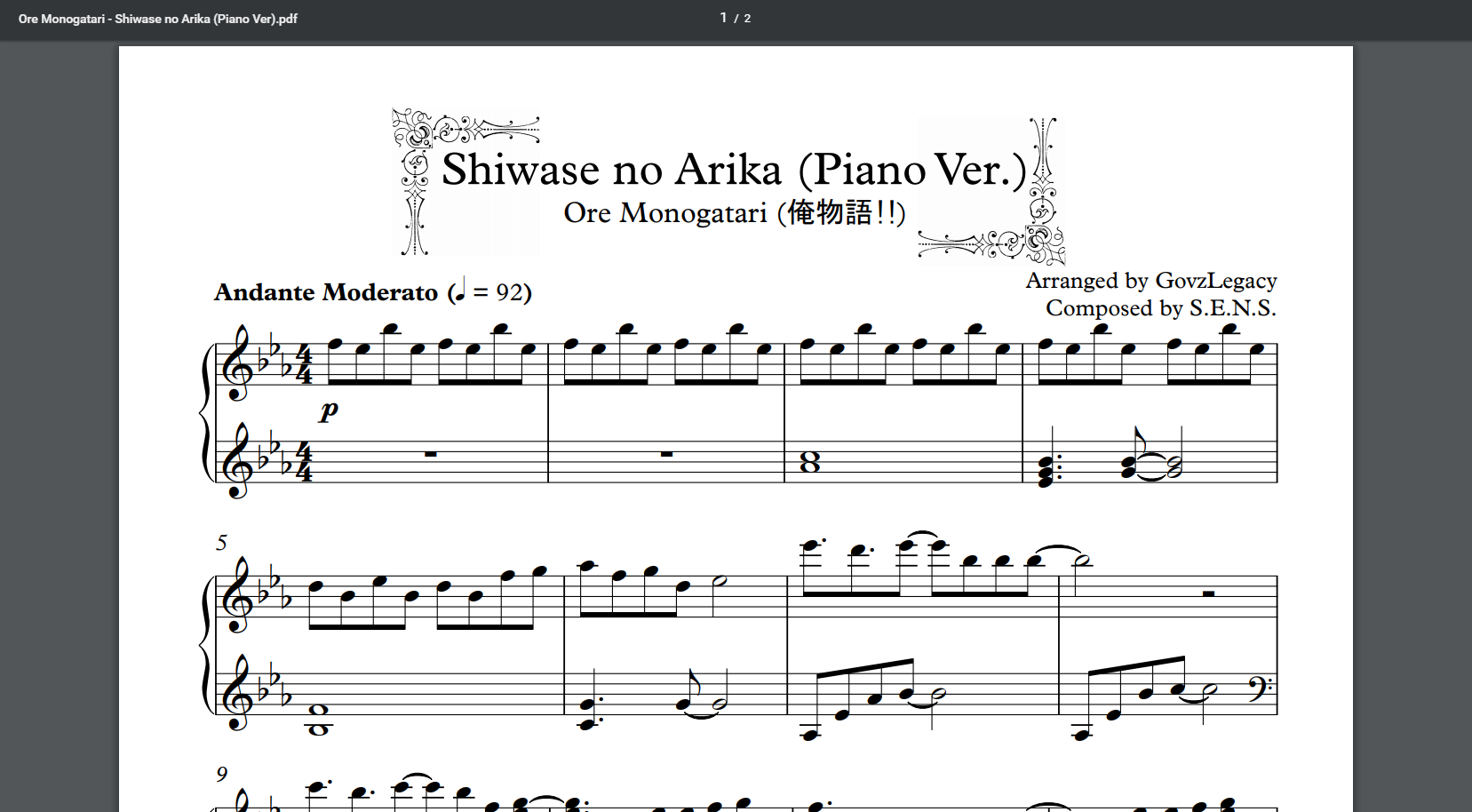 - Ore Monogatari - Shiwase no Arika (Piano Ver)
